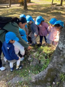 お城の周りと公園では落ち葉遊びや遊具で元気いっぱい身体を動かし、笑顔あふれるひとときとなりました😊